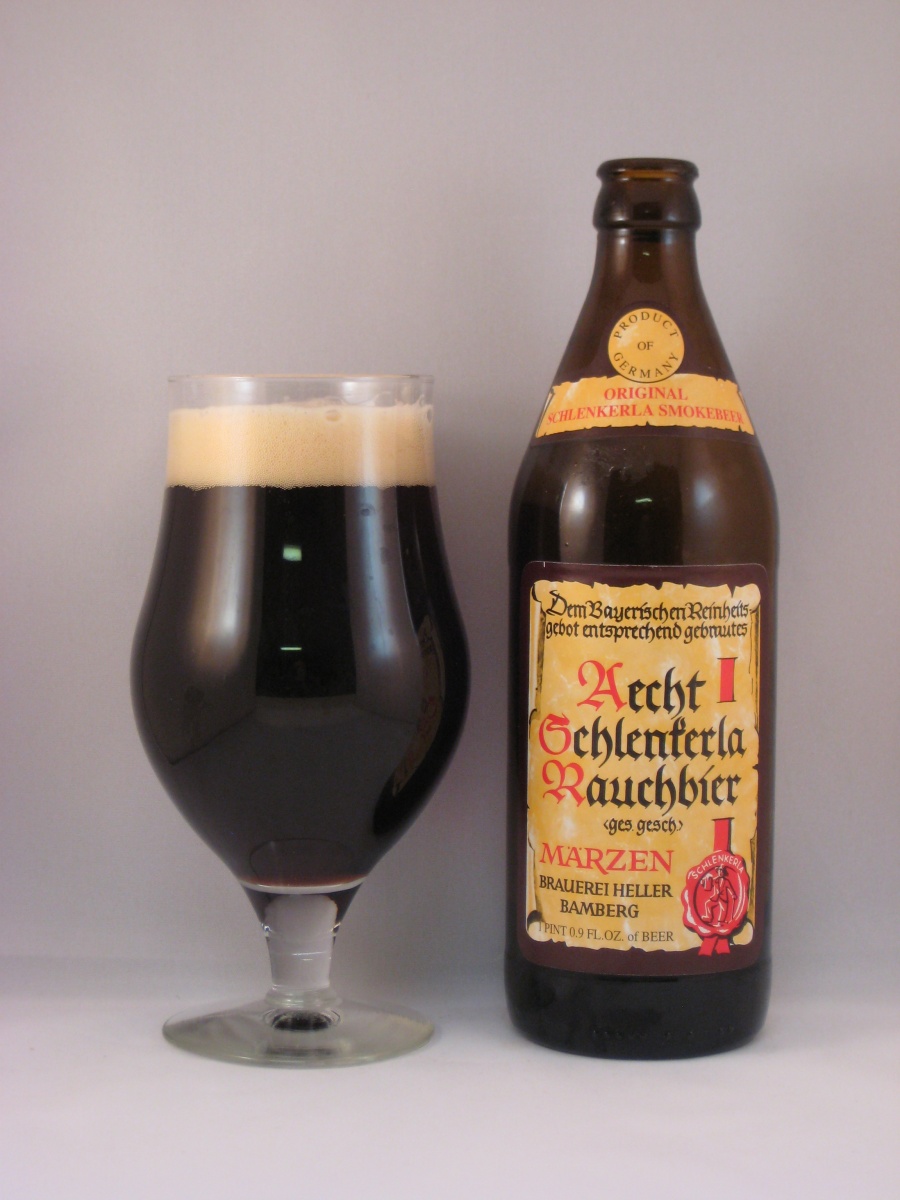 Commercial examples of this style include Kaiserdom Rauchbier, Eisenbahn Rauchbier, Victory Scarlet Fire Rauchbier, Spezial Rauchbier Märzen, and Saranac Rauchbier. We decided to sample Schlenkerla Rauchbier Märzen.