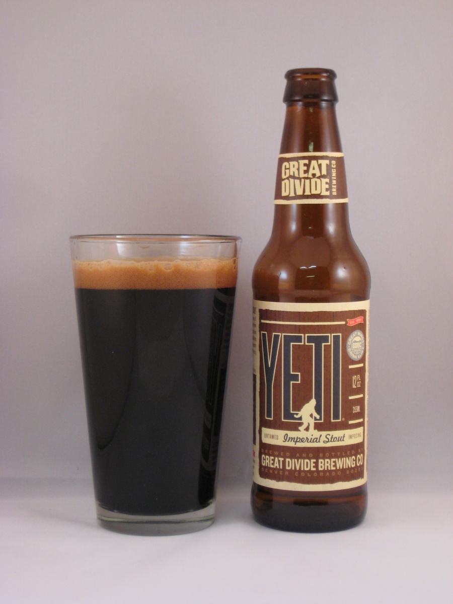 Commercial examples of this style include Three Floyd’s Dark Lord, Bell’s Expedition Stout, North Coast Old Rasputin Imperial Stout, Stone Imperial Stout, Samuel Smith Imperial Stout, Scotch Irish Tsarina Katarina Imperial Stout, Thirsty Dog Siberian Night, Deschutes The Abyss, Southampton Russian Imperial Stout, Rogue Imperial Stout, Bear Republic Big Bear Black Stout, Great Lakes Blackout Stout, Avery The Czar, Founders Imperial Stout, Victory Storm King, and Brooklyn Black Chocolate Stout. We decided to sample Great Divide Yeti.