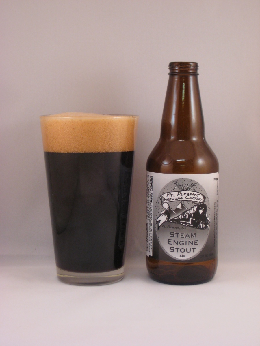 Commercial examples of this style include Rogue Shakespeare Stout, Deschutes Obsidian Stout, Sierra Nevada Stout, North Coast Old No. 38, Bar Harbor Cadillac Mountain Stout, Avery Out of Bounds Stout, Lost Coast 8 Ball Stout, and Mad River Steelhead Extra Stout. We decided to sample Mt. Pleasant Steam Engine Stout.