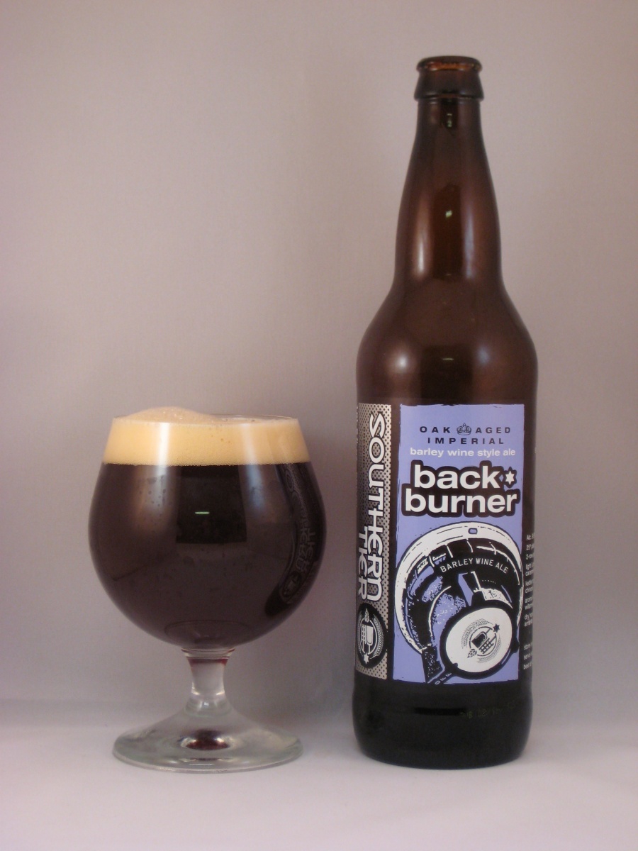 Commercial examples of this style include Sierra Nevada Bigfoot, Great Divide Old Ruffian, Victory Old Horizontal, Rogue Old Crustacean, Avery Hog Heaven Barleywine, Bell’s Third Coast Old Ale, Anchor Old Foghorn, Three Floyds Behemoth, Stone Old Guardian, Bridgeport Old Knucklehead, Hair of the Dog Doggie Claws, Lagunitas Olde GnarleyWine, Smuttynose Barleywine, and Flying Dog Horn Dog. We decided to sample Dogfish Head Olde School Barleywine and Southern Tier Backburner Barleywine.