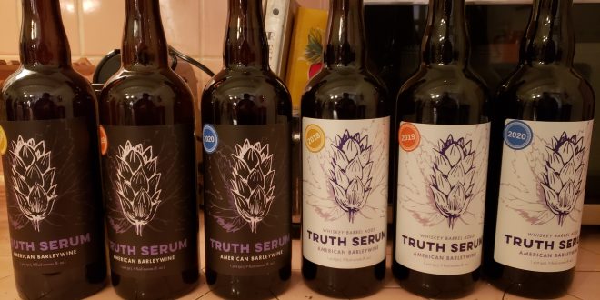 A short while ago, the incredibly generous people at Truth or Consequences Brewing offered to send us a three-year vertical of Truth Serum Barleywine. There would be three 22-ounce bottles of the regular versions produced for 2018, 2019 and 2020, plus three each of their barrel-aged versions. This was not something we would ever say no to, so once they were able to find a friend to deliver it to Albuquerque, and we were able to arrange a time and place to pick it up (thanks, REI parking lot, for being there), we ended up just needing to figure out a time and place to drink it and review it. Well, with Franz Solo keeping his fire pit area off limits for the remainder of the pandemic, we contacted our friend Dan for the use of his backyard and fire pit. Dan, whom some of you have probably seen wearing a Crew shirt and a kilt at beer festivals, is a barleywine geek of … |