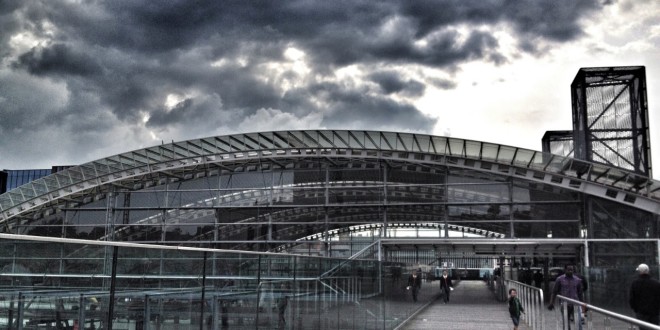 This is 30 Word Thursday: Take a pic and write a 30 word story or poem. It is that easy! This week’s pic was taken on a cloudy day in Leuven, Belgium, just outside our hotel at the entrance to the train station. The contrast of modern glass and steel against ancient stonework was startling to me.