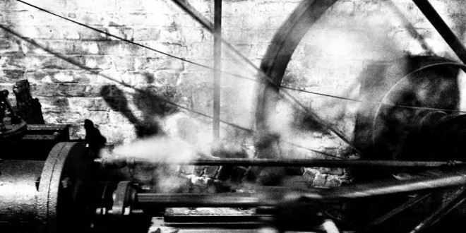 Cogs and wheels spin and gyrate to the pumping wheeze of a now obsolete technology.