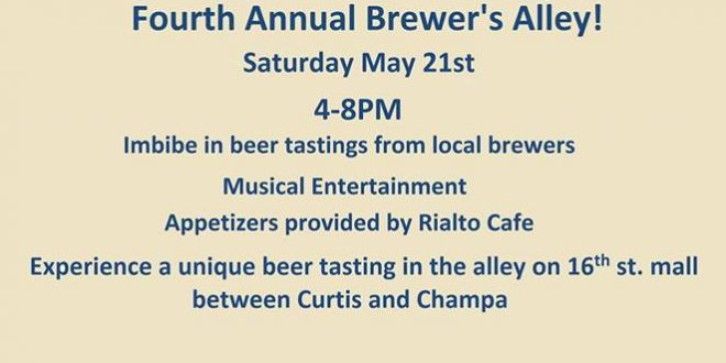 Beer lovers: looking for something fun to do next weekend? How about a beer event in downtown Denver, just off the 16th Street Mall?! Next Saturday, May 21st, is the 4th Annual Brewer’s Alley, presented by Rialto Cafe. Brewer’s Alley takes place right next to Rialto, in the alley between Curtis and Champa.