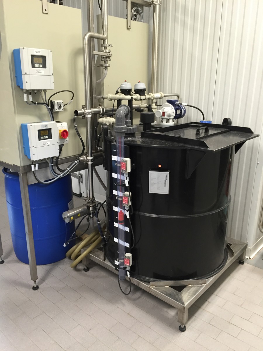 Next to these was the water treatment system which uses borough water as opposed to R.O. (Reverse Osmosis) and finally in the same room were the caustic and acid cleaners which are used for 45 minutes following each brew cycle.