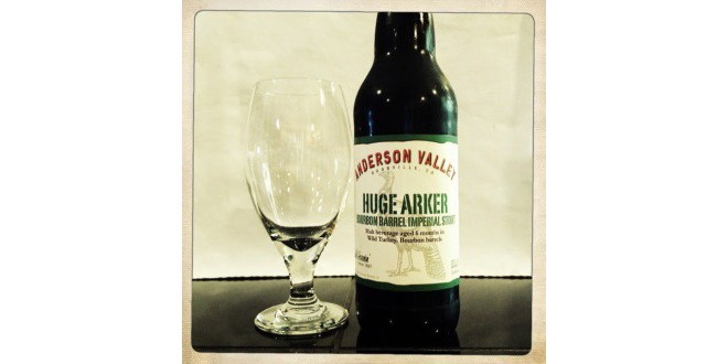 Tonight’s featured beer is Anderson Valley Brewing Company Huge Arker Bourbon Barrel Imperial Stout. As a HUGE fan of Anderson Valley Brewing Company I was really looking forward to trying this one.