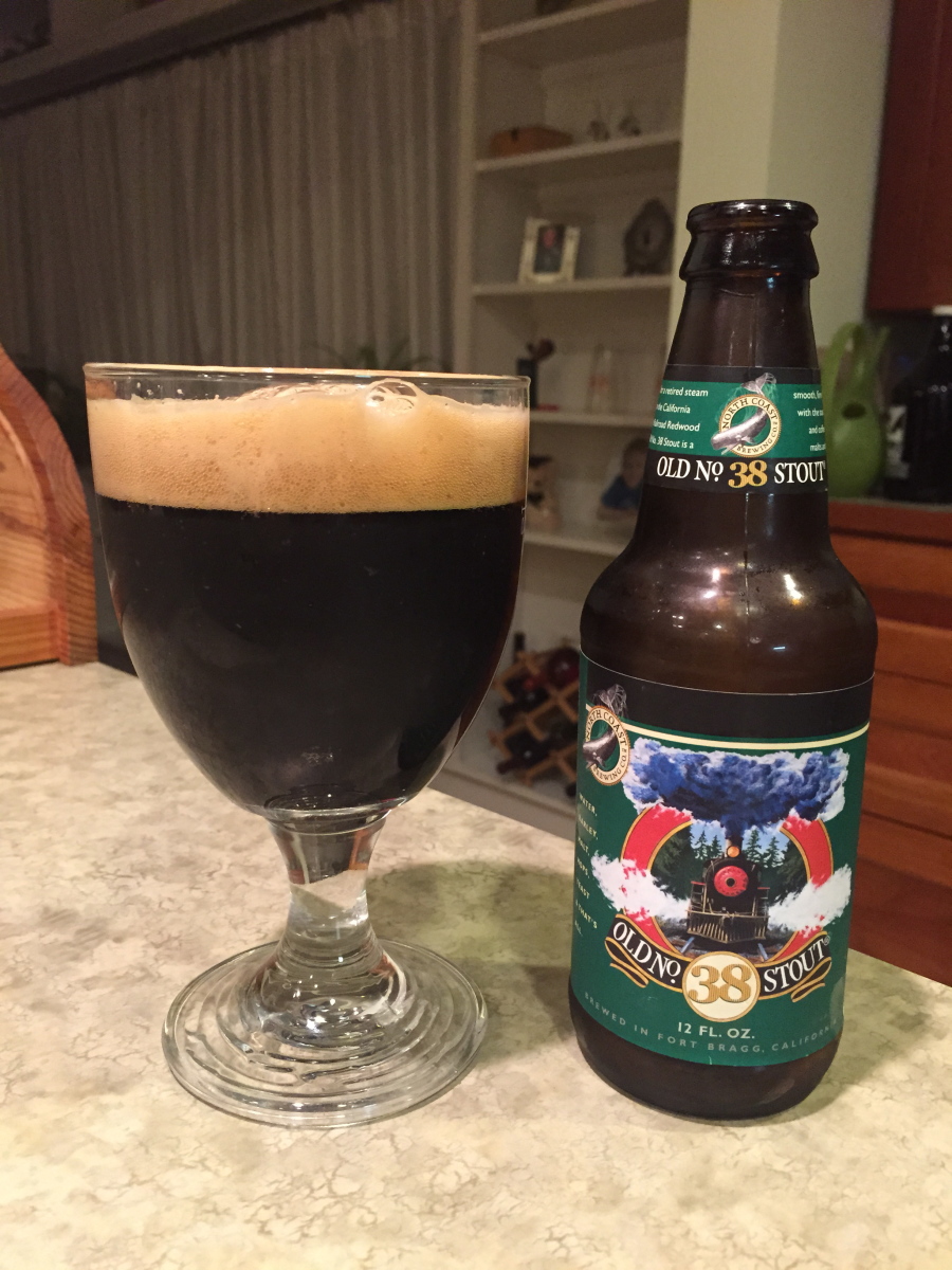 Description: Named for a retired California Western Railroad steam engine on the Fort Bragg to Willits run through the Redwoods, Old No. 38 Stout is a smooth, firm-bodied stout with the toasted character and coffee notes of dark malts and roasted barley.