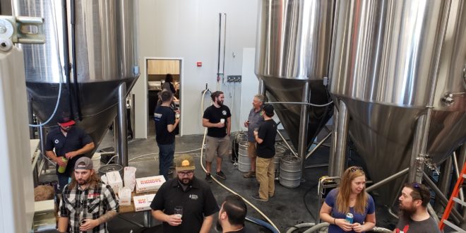 There were just a few brewers in the house at Bosque North. See how many you can identify! If your favorite brewery appeared to be missing its brewer on Tuesday, fear not, for he or she was likely working hard at Bosque Brewing in Bernalillo. Well, maybe not working hard, exactly, but that was the gathering place for representatives of some 20-plus breweries as the New Mexico Brewers Guild collaboration brew day took place. Land of Enchantment Lager was the result, the brain child of a number of brewers, brewed on the Bosque brewhouse for release in the near future. The beer was described by Bosque’s Tim Woodward as “a mix of an India pale lager and a West Coast pilsner.“ While the Bosque team went to work, everyone else mingled, shared beers, shared stories, and devoured the ample supply of goodies from Dunkin Donuts, and later, Restoration Pizza. Brewers Guild executive director Leah Black snaps a photo of Bosque’s John Bullard, center, and Tim Woodward atop their brewhouse. Brewers … |
