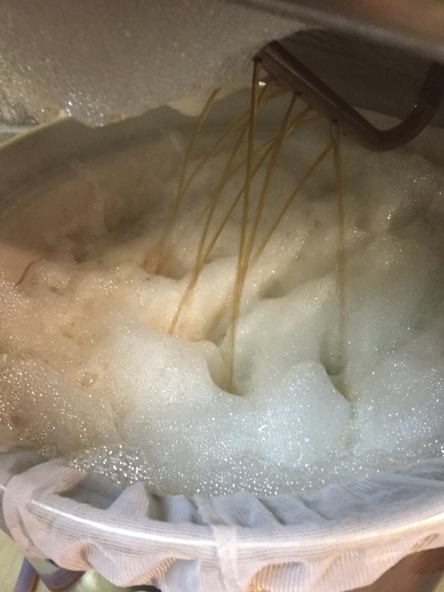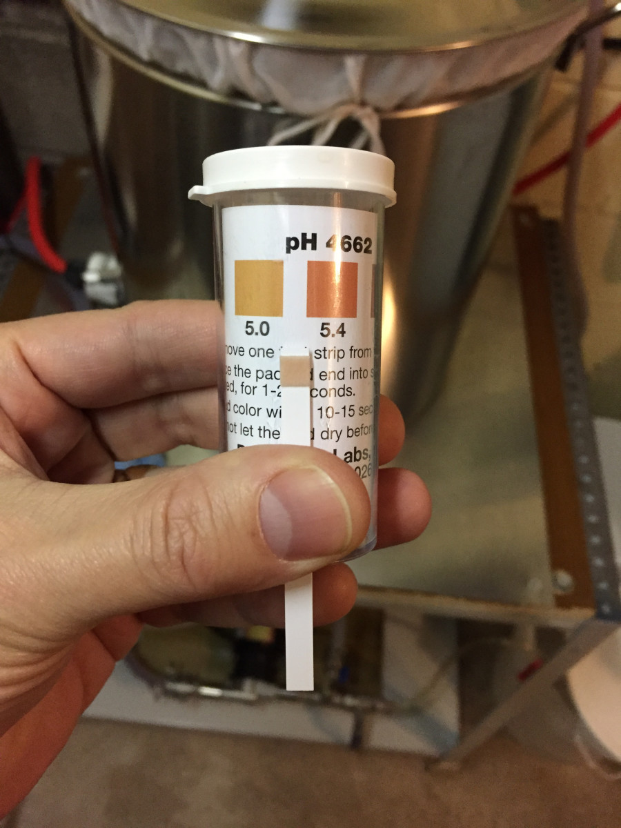 - Mashing for 75 mins at 152 deg F for the Saccharification rest so the starches convert into sugars (pH 5.2).