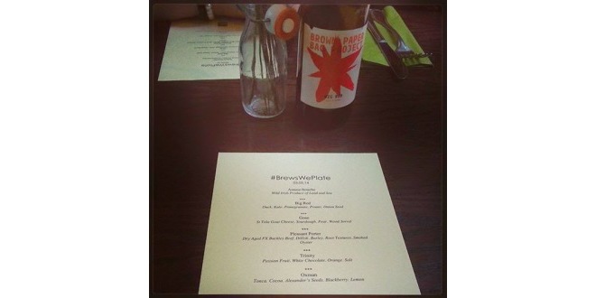 | You may have seen a lot of retweeting by me in recent weeks shouting out about the recent #Brewsweplate event. This was the second such event ran by Eric Heilig and Floriane Loup where each course is cooked to match the beers. My post about the last event is here The beers this time were supplied by the Brown Paper Bag Project, a nomadic brewer that has spawned from one of the finest gastro pubs in the country, L Mulligan Grocer in Stoneybatter. Their brewer Brian was there to describe each beer with each course. The ante was upped this time, both in terms of price and matched beers. 5 vs 4 on the last outing. The venue was meant to be the wonderful Powerscourt Centre, but there was a last minute change to Juno’s cafe on Parkgate St Dublin 8. The price, €65. A dining room with an open kitchen, and the place full to the rafters we were in for a treat. First up was the amuse bouche, mackerel with butter milk and caviar. A tasty little morsel. |
