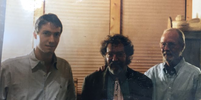 From circa 1995, a young Ty Levis, left, now of Rio Bravo, and his father Michael Levis, right, the founder of Santa Fe Brewing, pose with The Beer Hunter, Michael Jackson, at the old Galisteo location for SFBC. (Photo courtesy of Ty Levis)