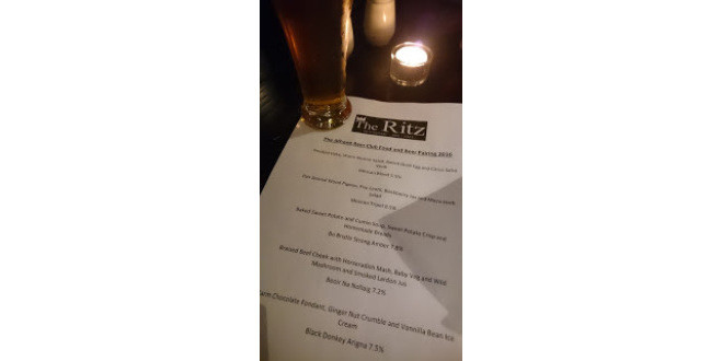 So Friday night we joined Simon Says and the Athlone beer club for one of their monthly meetings. While it was my first time to meet up, Wayne had the pleasure of attending before. Simon organized a great event for the night, a craft beer and food pairing evening hosted by The Ritz aptly named #HopsAtTheRitz. Unsurprisingly there was a terrific turn out on the night. The guys put together a wonderful menu with some great beers.While I read over it I began with a pale ale from St Mels