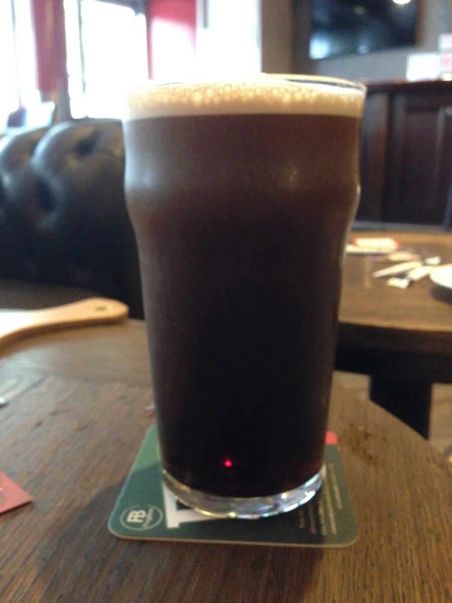 After our sampler we ordered a pint of Dark de Triomphe and were staggered at the difference between this and the sampler 1oz pour. With the sampler pour it was not apparent that this beer was on nitro and just tasted of coffee, whilst with the pint the head was thick and creamy and the body was smooth and brought out the dark malts. The reason for this would seem to be that with the 1oz taster there is insufficient agitation to bring the nitrogen out of suspension whilst with the pint there was sufficient time and volume for this to happen.