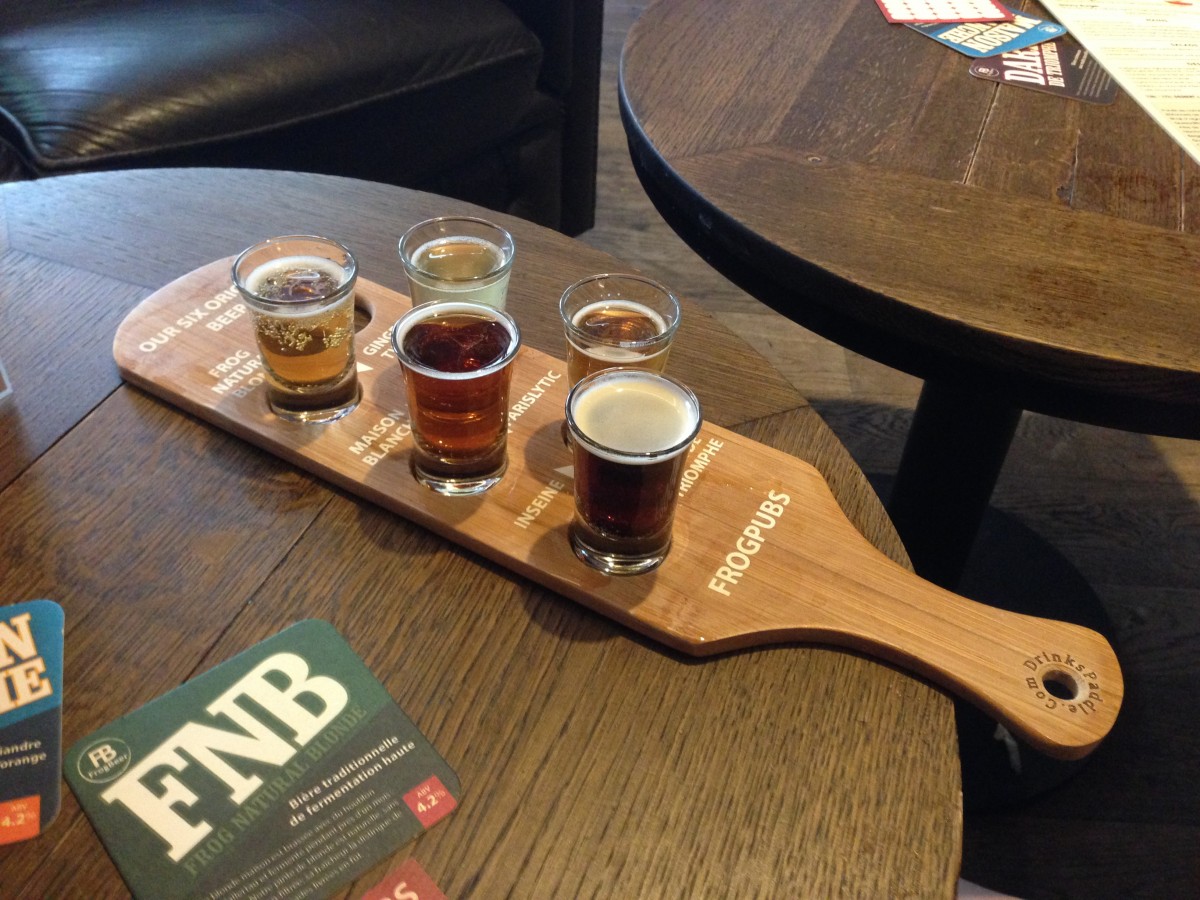 The Frog XVI brews a total of 6 different beers, including some with names that play on the theme of Paris, and although their menu does not mention a beer sampler, if you ask for a taster then you will be served one containing 6 x FREE 1oz glasses: