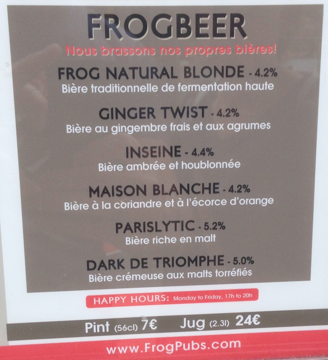 If you are in Paris we can recommend calling into one of the Frog brewpubs and if you have any comments or questions please do not hesitate to leave them below.