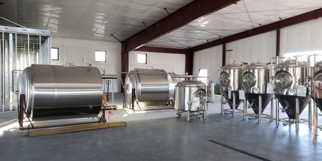 The sizable Ex Novo production brewery building is nearly complete in the center of Corrales. It is almost a Merry Christmas for craft beer lovers living in Corrales. They can look to the heart of the village and see their own craft brewery rising up. Ex Novo Brewing has gone from concept to almost-completed structure at 4895 Corrales Road. The 10,000 square-foot production brewery has taken shape in a lot on the west side of the street, across from the fire station and Corrales Bistro Brewery. This will be the second Ex Novo, as the original is in Portland, Oregon. Owner Joel Gregory, however, is a Corrales native, and he wanted to bring his brewery home. Joel invited me to visit the construction site on Thursday afternoon. “The last time we talked, all I had was dirt,” Joel said, referring to our first interview last year over beers at Steel Bender. “Now look at it.”