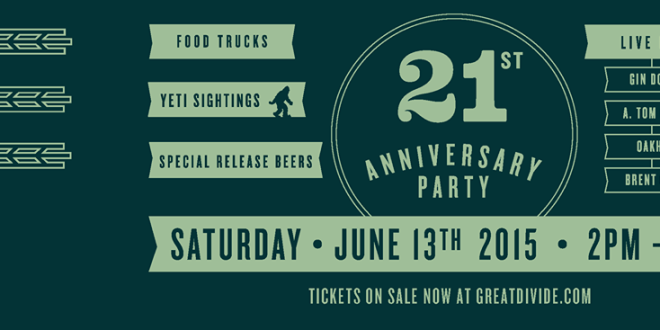 As Great Divide Brewing Company enters its 21st year of brewing excellent beers, it’s time to celebrate! And you can do just that at its big anniversary bash Saturday, June 13th. The details: When: Saturday, June 13th from 2-6 p.m. Where: 3395 Brighton Boulevard, Denver (future home of its second location) What: A party to celebrate Great Divide’s 21st anniversary! Ticket price includes unlimited access to the entire lineup of Great Divide beer (including many special releases), live music, a food ticket (for a generous snack from one of Denver’s finest food trucks), a commemorative (and reusable!) stainless steel pint & free bike valet. Cost: $40 per person, tickets here Don’t miss your chance to see a Yeti up close and personal! This event will most likely sell out, so get your tickets today before it’s too late! |