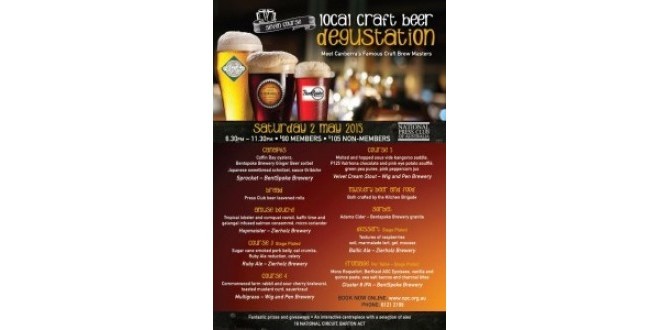 Click to view the menu for the event Canberra brewers BentSpoke, Zierholz and Wig & Pen will showcase their beers in an upcoming event at the National Press Club. The seven course dinner on Saturday May 2 is the second beer event hosted by the club, its sales and marketing manager Cathy Bryson told Australian Brews News. “The National Press Club has traditionally hosted some fantastic wine degustations and in response to member requests we expanded to include a beer degustation,” she said. “We have always been big supporters of local industry and extraordinary individuals. The three local brewers are well known and loved for their passion and dedication to a higher calling – the making of beer!” Click here for further information and to purchase tickets. … |