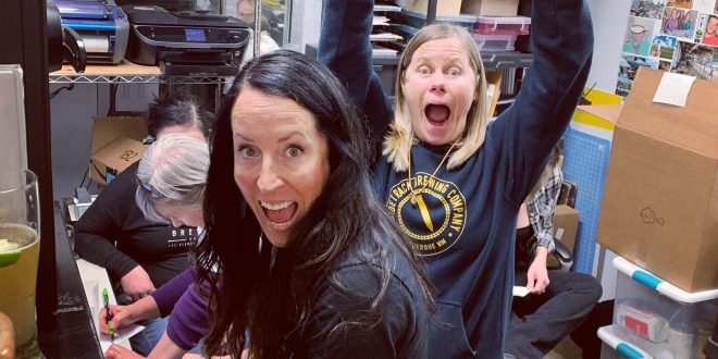 Back in the before times, at the Stout Invitational at Bathtub Row in Los Alamos, someone snapped this wonderful photo of Brewers Guild executive director Leah Black, left, and board of directors president Anne O’Neill hamming it up. Ah, the memories. (Photo courtesy of Red Door Brewing)