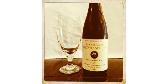 Tonight’s featured beer is North Coast Brewing Company Barrel-Aged Old Rasputin Russian Imperial Stout – Stout Aged in Bourbon Barrels.
