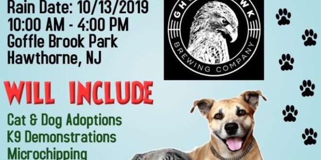 Paws in the Park is a special annual event that takes place at Goffle Brook Park in Hawthorne. Every year, Paws in the Park holds a celebration that honors our pets and finds forever homes for local pets in need of adoption. All proceeds from the event go towards the Passaic County Sheriff’s Department K-9 unit, which patrols the parks and county-owned properties. For the first time the event will include a beer garden featuring Ghost Bawk Brewing Company!