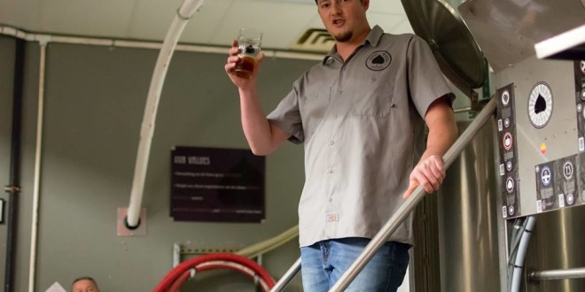Attendees line up for beer and food samples at the first Bosque Insider event. (All photos courtesy of Mario Caldwell) The other night three of us in the Crew — myself, Adam, and AmyO — got a chance to be a part of the first Bosque Insider event. This invite-only experience happened inside the brewery, where we got to try out some of Bosque’s new food items paired with specific new beers. More on that in a minute, but first up as members of the staff gave speeches and did a little Q&A, we were able to pick out quite a few newsy items. Fear not, for any that cry out for more information/explanation, I will be sitting down with the Bosque command staff next week for their Look Back/Look Ahead Series entry.
