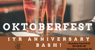 Hamilton Township: Oktoberfest 1YR Anniversary Bash! is happening at Hamilton Tap & Grill Amanda from Hamilton Tap & Grill said on Saturday, October 5 from 02:00 pm to 01:00 am Free buffet 2-5pm, Live Music starting at 9pm, Biergarten,$2 Pints 2pm, $3 Pints 3pm, $4 Pints 4pm, $5 Pints 5pm, Dog Friendly!! Help us celebrate reaching the 1 ...