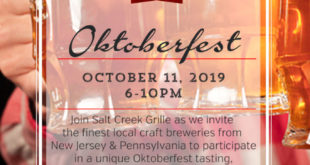 Princeton: SCG’s 2nd Annual Oktoberfest is happening at Salt Creek Grille Chad from Salt Creek Grille said on Friday, October 11 from 06:00 pm to 10:00 pm Your ticket will grant you UNLIMITED samples of over 20 Locally Crafted Beers!! The following Breweries along with NJCB (New Jersey Craft Beer Association) will be in attendance: Kane, ...