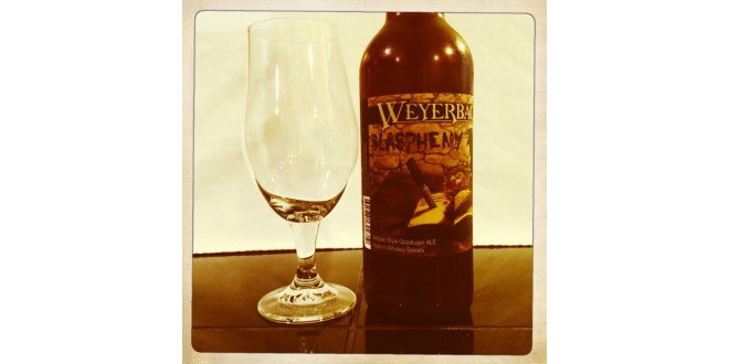 Tonight’s featured beer is Weyerbacher Brewing Company Blasphemy Belgian-Style Quadrupel Ale Aged in Whiskey Barrels.