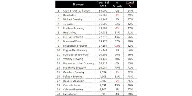 | Each year, General Distribution’s Jim Fick closely tracks the sales of Oregon beer in Oregon, and he very graciously forwards me the spreadsheet with the numbers. The final figures are out for 2015, so we can look at which breweries were selling the most beer here in their home state. (Important note: these figures come from the OLCC and track just the barrels of beer sold in Oregon by Oregon breweries; they do not track total barrels sold by each brewery nor the amount of beer sold here by non-Oregon brewers.)